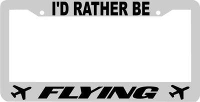 I'D RATHER BE FLYING airplane License Plate Frame Plastic License Plate Frame Polystyrene plastic with vinyl graphics. Strong with tabs on the back to secure your plate to the frame. This is a buy it now for the frame pictured It is designed to fit a US/CANADA license plate.