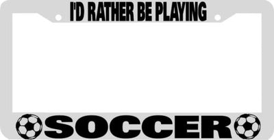 I'd rather be playing SOCCER License Plate Frame Plastic License Plate Frame Polystyrene plastic with vinyl graphics. Strong with tabs on the back to secure your plate to the frame. This is a buy it now for the frame pictured It is designed to fit a US/CANADA license plate.