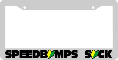 JDM SPEEDBUMPS SUCK License Plate Frame Plastic License Plate Frame Polystyrene plastic with vinyl graphics. Strong with tabs on the back to secure your plate to the frame. This is a buy it now for the frame pictured It is designed to fit a US/CANADA license plate.