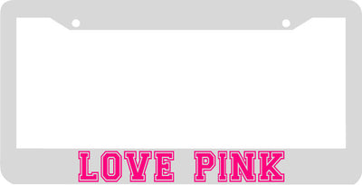 LOVE License Plate Frame Plastic License Plate Frame Polystyrene plastic with vinyl graphics. Strong with tabs on the back to secure your plate to the frame. This is a buy it now for the frame pictured It is designed to fit a US/CANADA license plate.