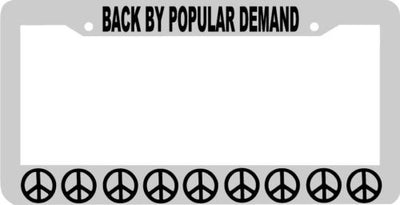 WHITE PEACE BACK BY POPULAR DEMAND License Plate Frame