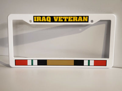 WHITE plastic IRAQ VETERAN war service ribbon medal war License Plate Frame
