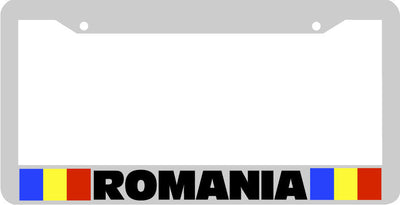 ROMANIA License Plate Frame Plastic License Plate Frame Polystyrene plastic with vinyl graphics. Strong with tabs on the back to secure your plate to the frame. This is a buy it now for the frame pictured It is designed to fit a US/CANADA license plate.