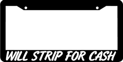 WILL STRIP FOR CASH funny rude joke License Plate Frame