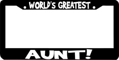 WORLD'S GREATEST AUNT License Plate Frame Plastic License Plate Frame Polystyrene plastic with vinyl graphics. Strong with tabs on the back to secure your plate to the frame. This is a buy it now for the frame pictured It is designed to fit a US/CANADA license plate.