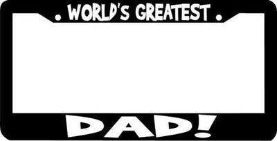 World's Greatest DAD License Plate Frame Plastic License Plate Frame Polystyrene plastic with vinyl graphics. Strong with tabs on the back to secure your plate to the frame. This is a buy it now for the frame pictured It is designed to fit a US/CANADA license plate.