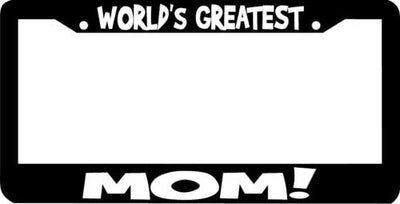 World's Greatest MOM License Plate Frame Plastic License Plate Frame Polystyrene plastic with vinyl graphics. Strong with tabs on the back to secure your plate to the frame. This is a buy it now for the frame pictured It is designed to fit a US/CANADA license plate.