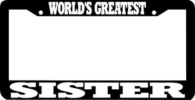 WORLD'S GREATEST SISTER License Plate Frame Plastic License Plate Frame Polystyrene plastic with vinyl graphics. Strong with tabs on the back to secure your plate to the frame. This is a buy it now for the frame pictured It is designed to fit a US/CANADA license plate.