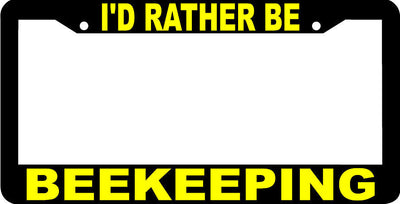 yellow I'D RATHER BEEKEEPING License Plate Frame
