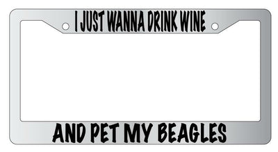 I Just Wanna Drink Wine And Pet My Beagles Chrome License Plate Frame Mod-GRAPH9856236-4777