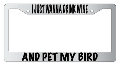 I Just Wanna Drink Wine And Pet My Bird Chrome License Plate Frame Mod-GRAPH9856236-4771