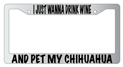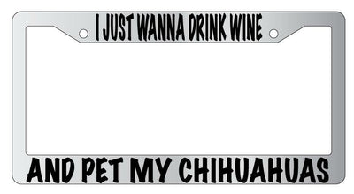 I Just Wanna Drink Wine And Pet My Chihuahua Chrome METAL License Plate Frame Mod-GRAPH9856236-8948
