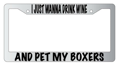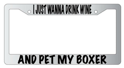 I Just Wanna Drink Wine And Pet My Boxers Chrome License Plate Frame Mod-GRAPH9856236-4768
