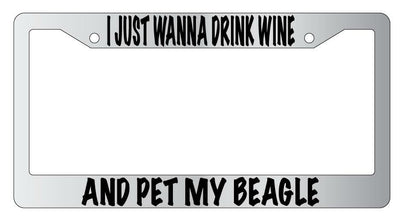 I Just Wanna Drink Wine And Pet My Beagle Chrome License Plate Frame Mod-GRAPH9856236-4773
