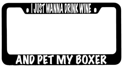 I Just Wanna Drink Wine And Pet My Boxers Black Plastic License Plate Frame Mod-GRAPH9856236-623