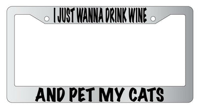 I Just Wanna Drink Wine And Pet My Cats Chrome License Plate Frame Mod-GRAPH9856236-4766