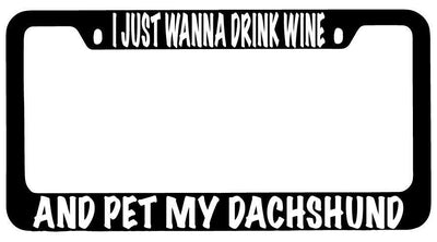 I Just Wanna Drink Wine And Pet My Dachshund Black METAL License Plate Frame Mod-GRAPH9856236-8709