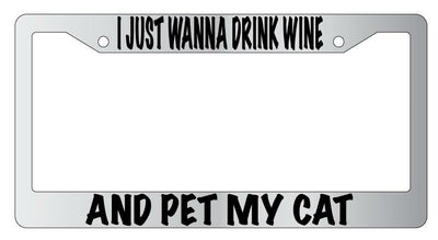 I Just Wanna Drink Wine And Pet My Cat Chrome METAL License Plate Frame Mod-GRAPH9856236-8950