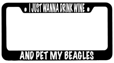I Just Wanna Drink Wine And Pet My Beagles Black Plastic License Plate Frame Mod-GRAPH9856236-627