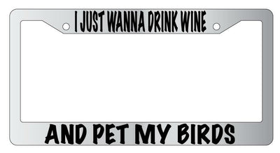 I Just Wanna Drink Wine And Pet My Birds Chrome License Plate Frame Mod-GRAPH9856236-4772