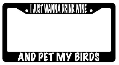 I Just Wanna Drink Wine And Pet My Birds Black Plastic License Plate Frame Mod-GRAPH9856236-632