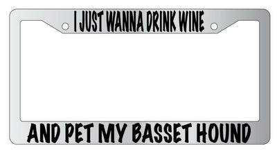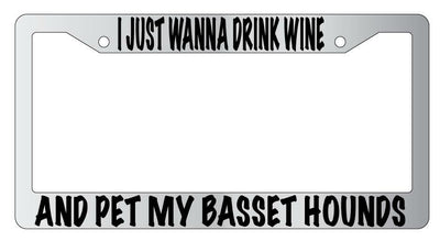 I Just Wanna Drink Wine And Pet My Basset Hounds Chrome License Frame Mod-GRAPH9856236-4776