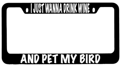 I Just Wanna Drink Wine And Pet My Bird Black Plastic License Plate Frame Mod-GRAPH9856236-633