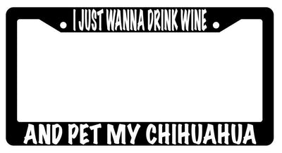 I Just Wanna Drink Wine And Pet My Chihuahua Black METAL License Plate Frame Mod-GRAPH9856236-8707
