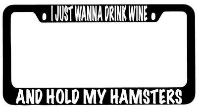 I Just Wanna Drink Wine And Hold My Hamsters Black Plastic License Plate Frame Mod-GRAPH9856236-606