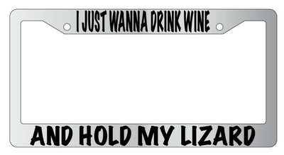 I Just Wanna Drink Wine And Hold My Lizard Chrome License Plate Frame Mod-GRAPH9856236-4746
