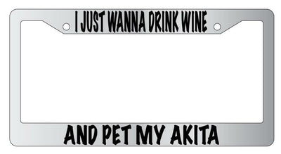 I Just Wanna Drink Wine And Pet My Akitas Chrome License Plate Frame Mod-GRAPH9856236-4778