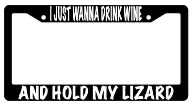 I Just Wanna Drink Wine And Hold My Lizard Black Plastic License Plate Frame Mod-GRAPH9856236-607