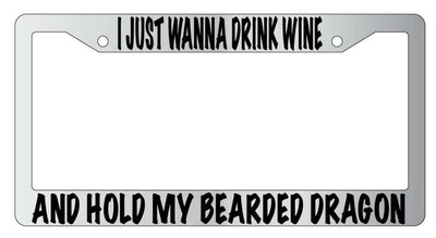I Just Wanna Drink Wine And Hold My Bearded Dragon Chrome License Plate Frame Mod-GRAPH9856236-4774