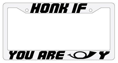 Honk If You Are Horn Y Design 2A White Plastic License Plate Frame Mod-GRAPH9856236-3671