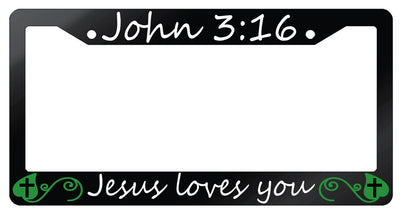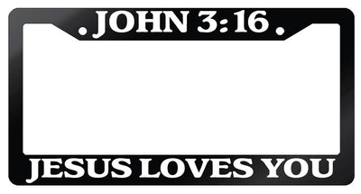 Glossy Plastic Black License Plate Frame John 3:16 Jesus Loves You Christian Mod-GRAPH9856236-7451