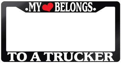 Glossy Black License Plate Frame MY HEART BELONGS TO A TRUCKER Auto Accessory Mod-GRAPH9856236-7201