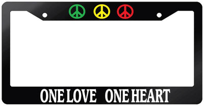Glossy Black License Plate Frame ONE LOVE ONE HEART (PEACE SYMBOLS) Auto Mod-GRAPH9856236-7239