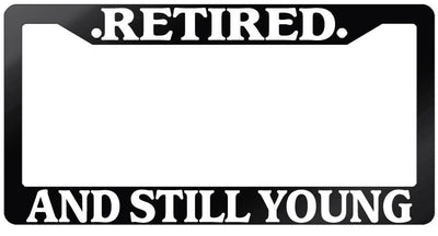 Glossy Black License Plate Frame RETIRED AND STILL YOUNG Auto Accessory Mod-GRAPH9856236-7427