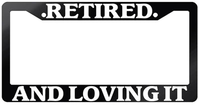 Glossy Black License Plate Frame RETIRED AND LOVING IT Auto Accessory Mod-GRAPH9856236-7426