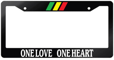 Glossy Black License Plate Frame ONE LOVE ONE HEART w/STRIPES Mod-GRAPH9856236-7256