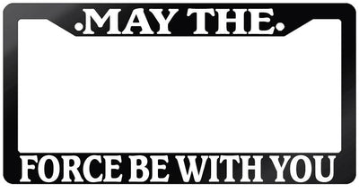 Glossy Black License Plate Frame MAY THE FORCE BE WITH YOU Auto Accessory -79 Mod-GRAPH9856236-7259