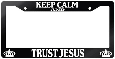 Glossy Black License Plate Frame KEEP CALM AND TRUST JESUS Accessory 2145 Mod-GRAPH9856236-7156