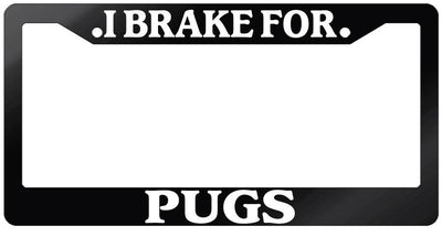Glossy Black License Plate Frame I BRAKE FOR PUGS Auto Accessory 913 Mod-GRAPH9856236-7494