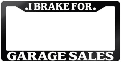Glossy Black License Plate Frame I BRAKE FOR GARAGE SALES Auto Accessory 904 Mod-GRAPH9856236-7915
