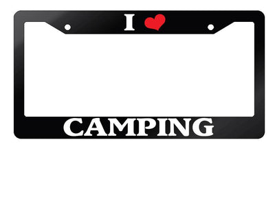 Glossy Black License Plate Frame I HEART CAMPING Auto Accessory Mod-GRAPH9856236-7549