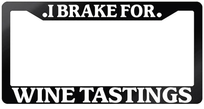 Glossy Black License Plate Frame I BRAKE FOR WINE TASTINGS Auto Accessory 920 Mod-GRAPH9856236-7493