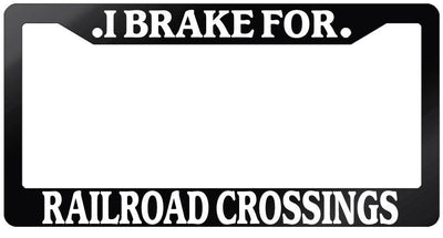 Glossy Black License Plate Frame I BRAKE FOR RAILROAD CROSSINGS Auto 914 Mod-GRAPH9856236-7491