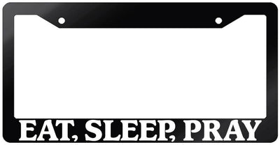Glossy Black License Plate Frame EAT, SLEEP, PRAY Auto Accessory 731 Mod-GRAPH9856236-7452