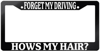Glossy Black License Plate Frame FORGET MY DRIVING HOW'S MY HAIR? Auto Accessory Mod-GRAPH9856236-7243