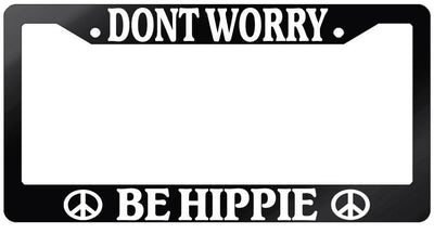 Glossy Black License Plate Frame DON'T WORRY BE HIPPIE Auto Accessory 694 Mod-GRAPH9856236-7238